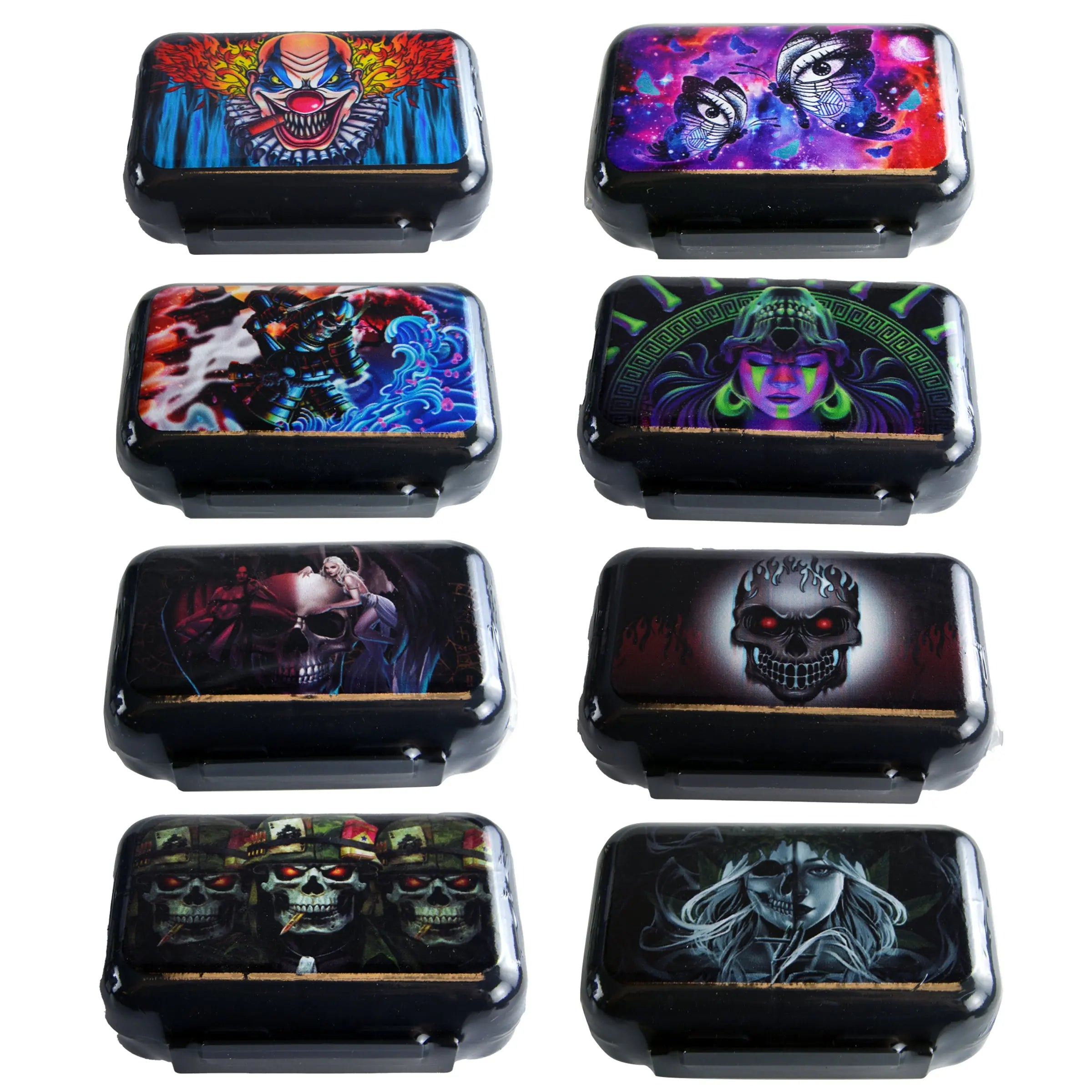 Our Smoking Tool Box features a seal tight latch to hide three compartments and includes free pipe tools (poker, scraper, packer, bottle opener) and a grinder card! Fits regular cigarettes, lighters, cash, cards, spare keys, jewelry, valuables and more. Air tight, water tight and smell proof! Includes a variety of printed design styles.