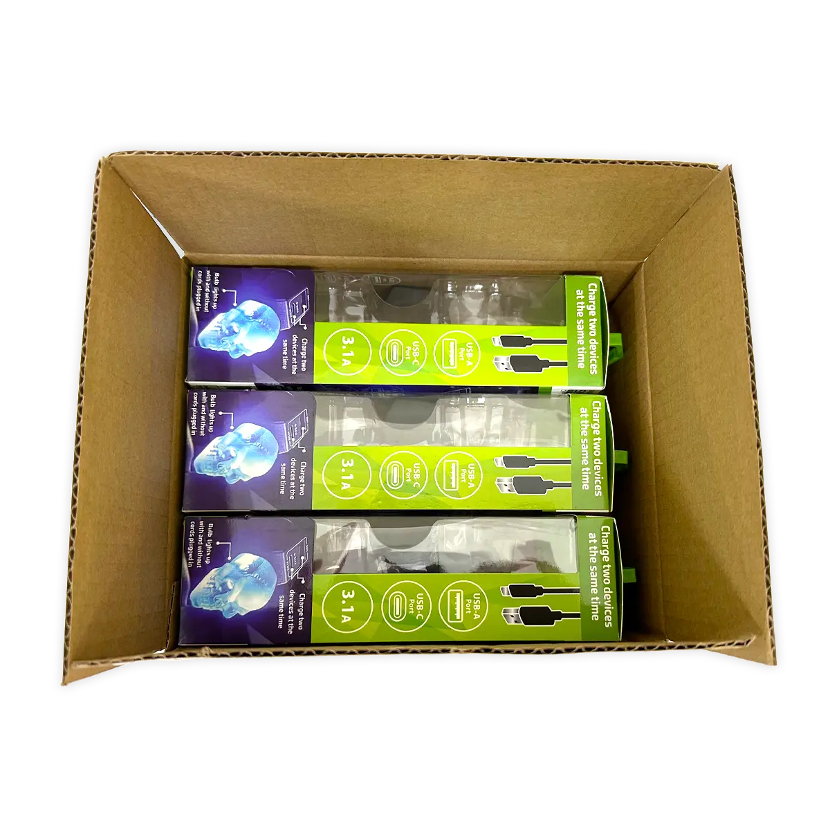 Car Charger Dual Port USB / USB-C LED Skull 3.1 Amp - 3 Pieces Per Pack 41785