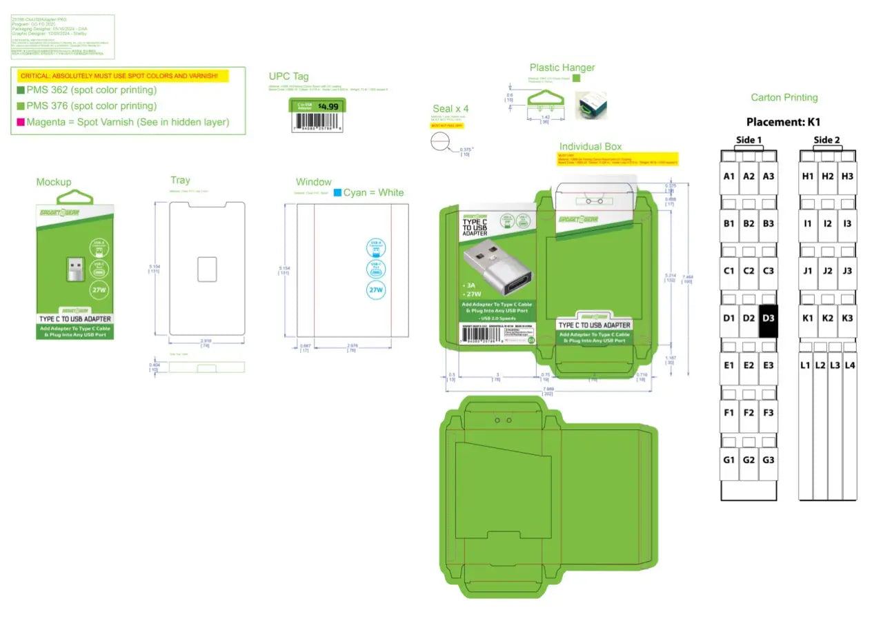 Charging Adapter USB-C to USB Converter - 3 Pieces Per Pack 25786