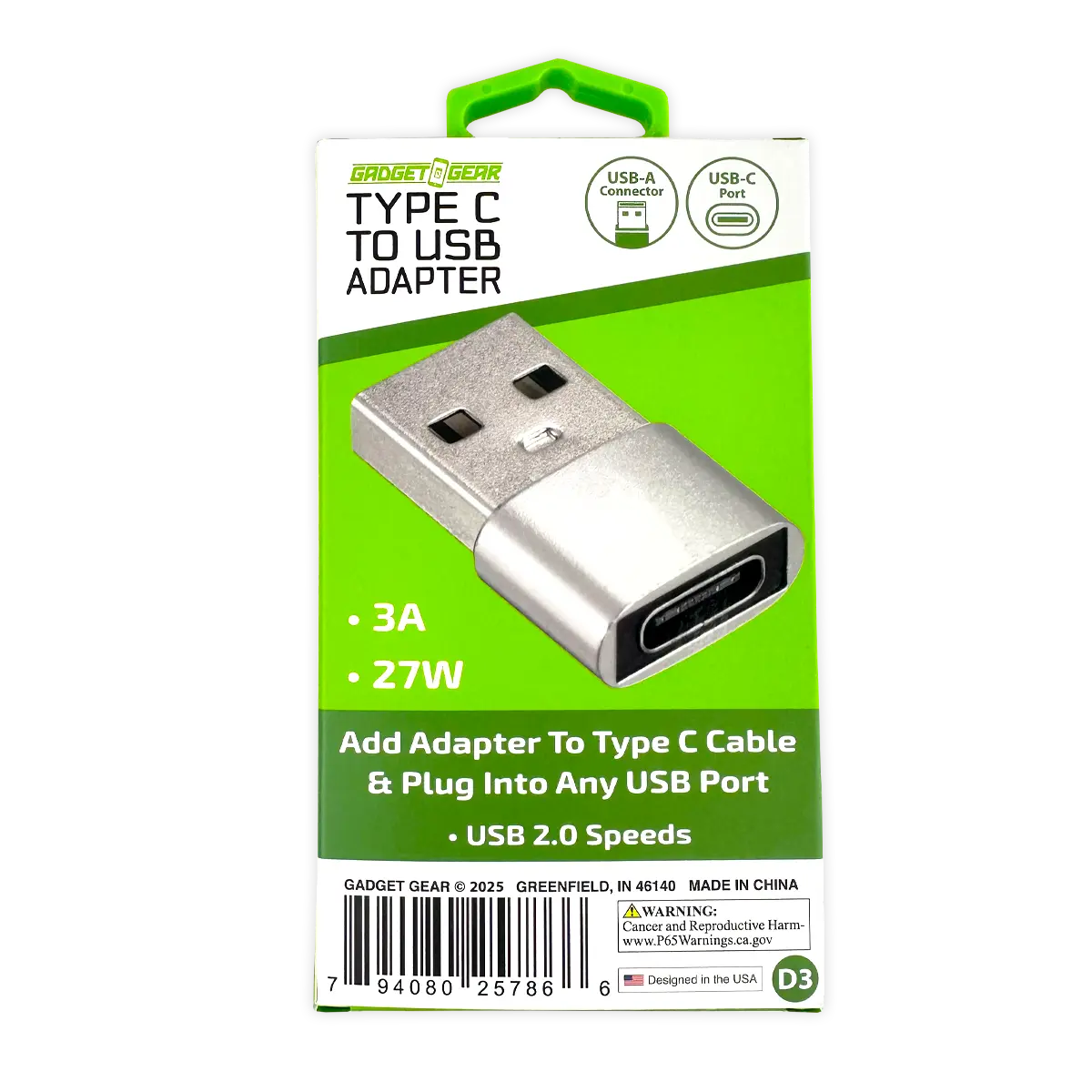 This charging adapter converter is a must-have for any tech enthusiast. Featuring USB-C female to USB-A male, this enables users to connect a C-to-C cable to any USB-A port. With a rated current of 3A or 27W, you can count on reliable power for all of your devices. Universal Compatibility. Turns USB ports into USB-C ports – enabling you to connect and charge via USB-C with any normal USB!
