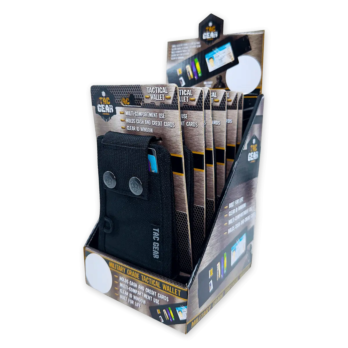 23646- Tac Gear Dual Torch Lighter- 15 Pieces Per Retail Ready Display 23289- LED Flashlight with Soft Touch Coating - 12 Pieces Per Retail Ready Display 23746- Canvas RFID Block Slim Wallet- 6 Pieces Per Retail Ready Display 23847- Electric Arch Lighter with COB Light- 6 Pieces Per Retail Ready Display 23191- Snap Tactical Wallet with ID Window- 6 Pieces Per Display 22583- LED Flashlight Tool with Mag Stand - 6 Pieces Per Retail Ready Display 23975- Ratcheting Screwdriver with Multi-Head - 6 Pieces Per Retail Ready Display 23833- Metal Flip Torch Lighter with Molle Case- 12 Pieces Per Retail Ready Display 23722- Molle Strap Key Chain with Heavy Duty Clip- 6 Pieces Per Display 22803- Silicone Ring Assortment- 12 Pieces Per Retail Ready Display 41592- Magnetic Storage Box- 4 Pieces Per Retail Ready Display 22273- Metal Insulated 24 oz Can Cooler- 6 Pieces Per Retail Ready Display 41655- Digital Tire Gauge with LED Light - 4 Pieces Per Retail Ready Display 976400- Corrugated Roughneck Cardboard Display
