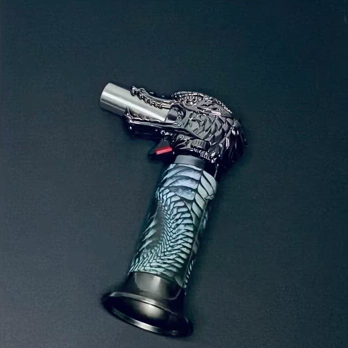 Refillable Jumbo Dragon Torch lighter Has 2300° flame, strong enough for any task! Great for camping, bronzing metal, soldering wires, flaming food, and more! Comes with a safety lock and in different colors.