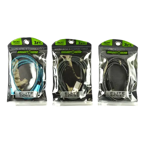 Charging Cable Elite Cloth USB to Micro USB 3FT - 3 Pieces Per Pack 21153 GADGET GEAR
