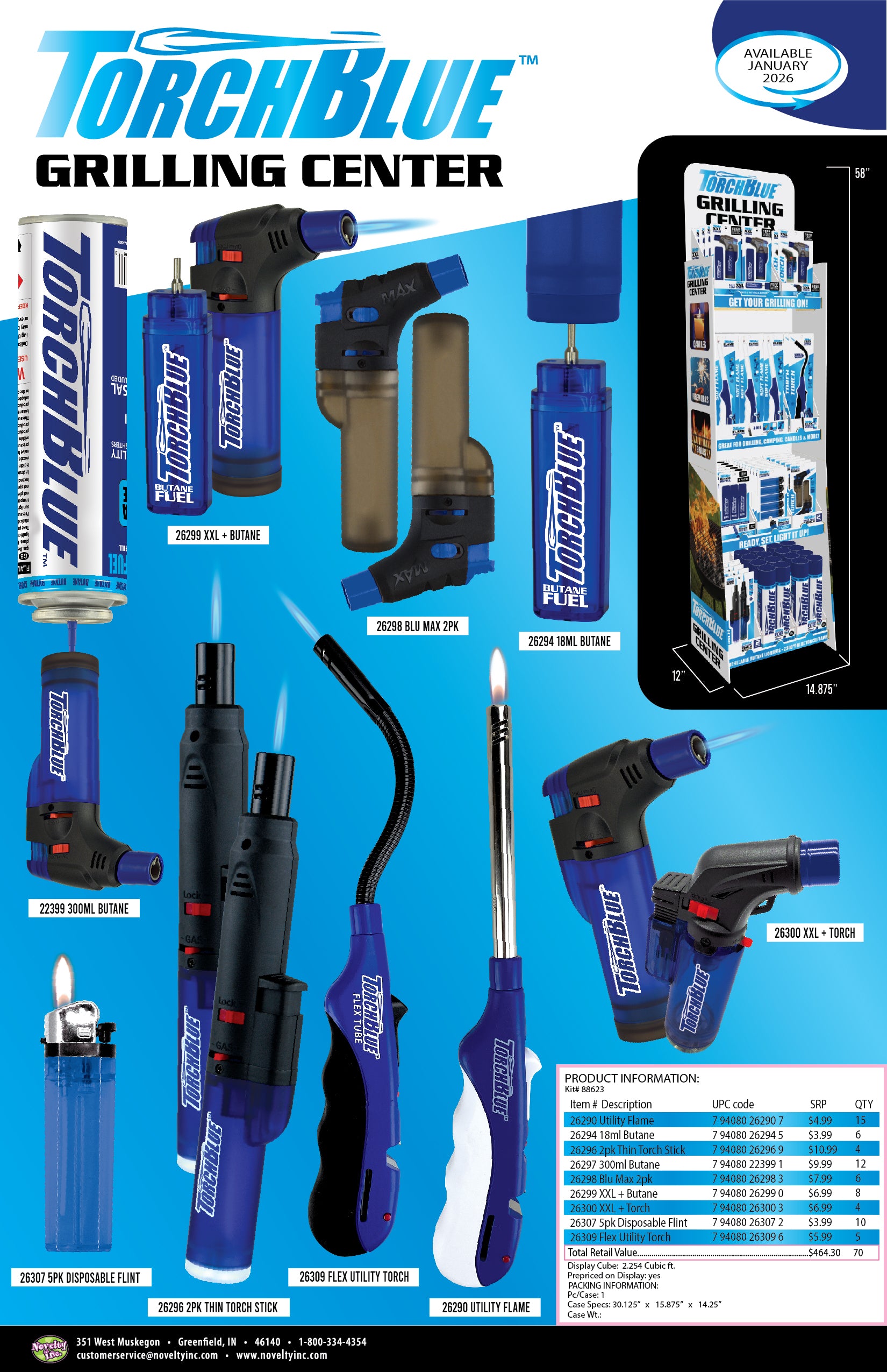 The Grilling Center Lighter Assortment Floor Display offers a comprehensive retail-ready solution, featuring meticulously selected Torch Blue lighter products. Each item is pre-priced for streamlined inventory management and customer convenience, minimizing transaction times and enhancing purchase confidence. The organized floor display is designed to attract attention while maintaining an efficient presentation, making it an ideal choice for retailers aiming to optimize their grilling accessory sales. This assortment combines product variety and ease of access, supporting both novice and seasoned grillers with reliable, high-quality lighting tools.