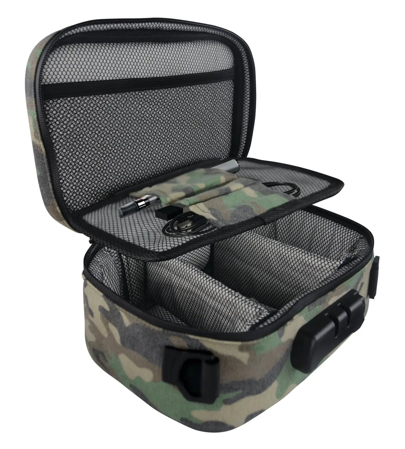 This Locking Storage Bag is the perfect place to store your tobacco, money, medicine, and more. It 's made with a durable canvas material and features 6 layers of smell proof insulation, scent blocking zipper, removable tool organizer, and a combination lock!