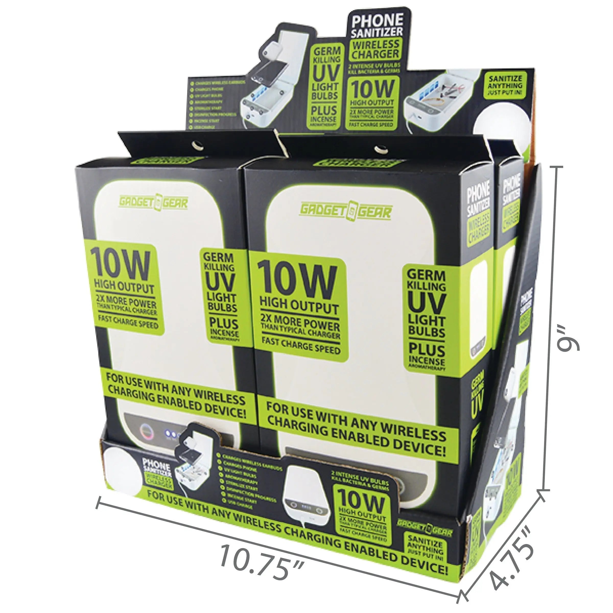 Cell Phone Sanitizer and Wireless Charger 10 Watts - 4 Pieces Per Retail Ready Display 21942