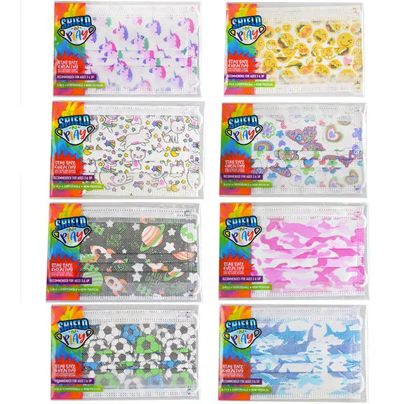 Children's 3-ply, disposable, non-medical printed masks with designs. Comes in assorted, fun styles. Recommended for ages 3+.