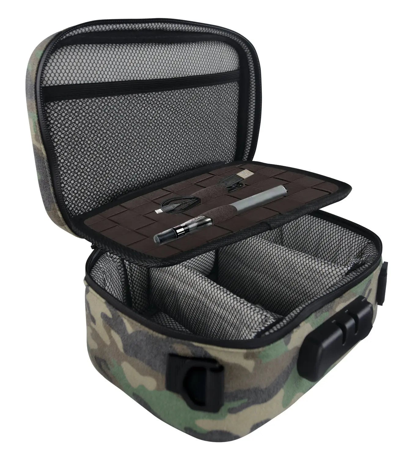 This Canvas Locking Storage Bag is the perfect place to store your tobacco, money, medicine, and more. It 's made with a durable canvas material and features 6 layers of smell proof insulation, scent blocking zipper, removable tool organizer, and a combination lock!