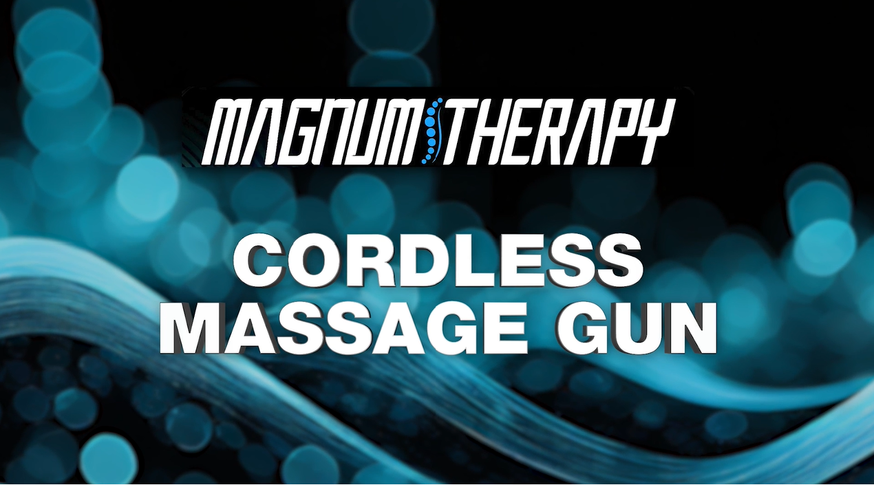 Magnum Therapy CORDLESS Massaging Gun features 2000MAh rechargeable battery, 4 levels of pulsing action, 20W brush motor and a sleek soft-touch-finish design. Each display includes accessories shown. Relieves sore & stiff muscles with 6 hours of massage time! Great for athletes, business trips, at your desk and at home! Makes the perfect anytime gift.