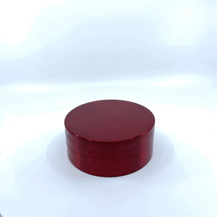 98 MM 4 piece JUMBO SIZE grinder. Comes in assorted blue, silver, red and black colors. Made from durable, lightweight aircraft grade aluminum. Has fine metal screen and includes scraper tool.