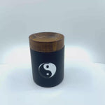 Mirrored Glass Storage Jars feature a concave wood lid perfect for grinding herbs, and tobacco. Jar is moisture proof and features an air tight seal that keep contents fresh. Includes dragon, sugar skull, yin-yang, mandala, zodiac and rose debossed designs.🪞☯️🐉💀☸️🌞