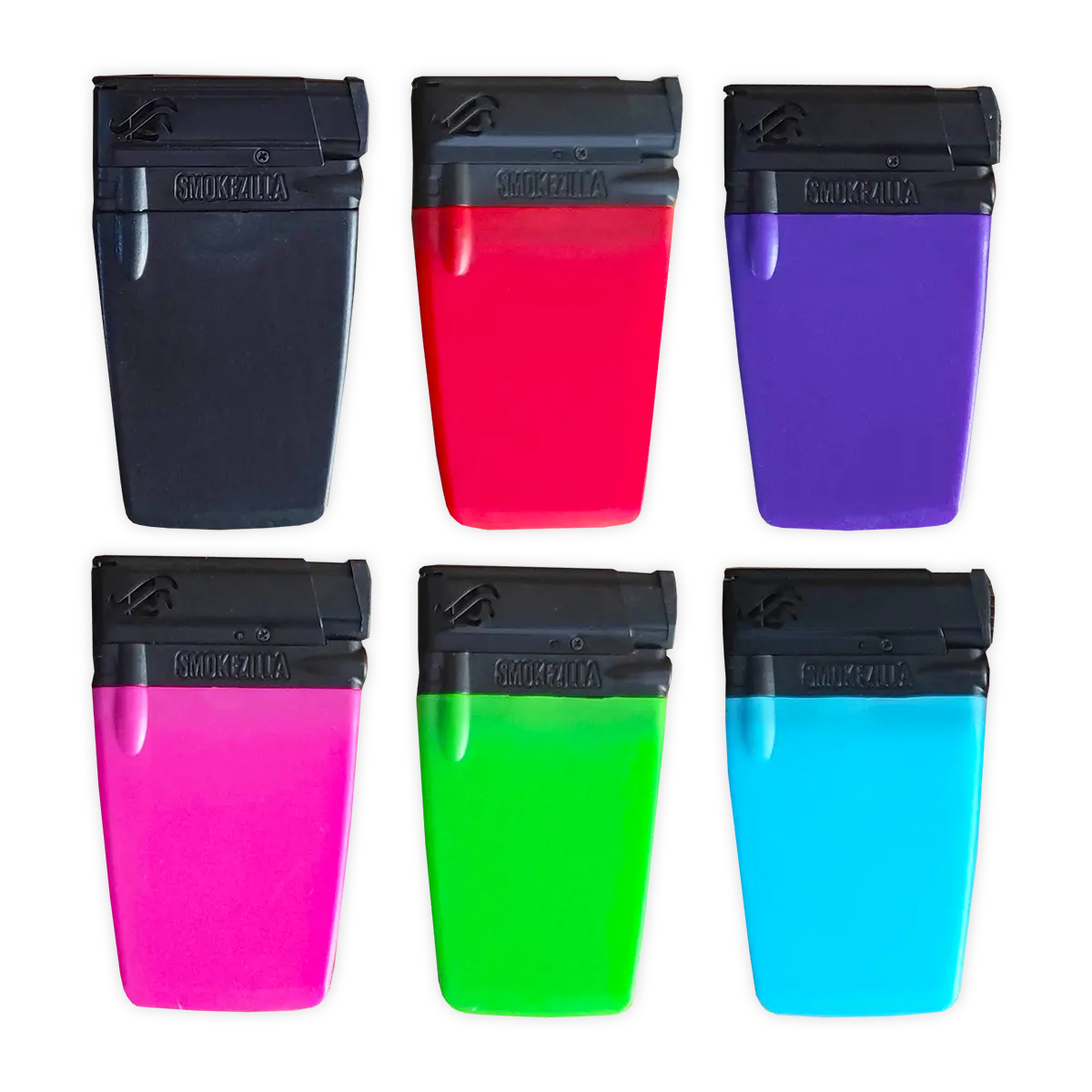 Super thin REFILLABLE lighters designed to fit right in your cigarette pack. Display includes an assortment of slim, sleek solid color designs.