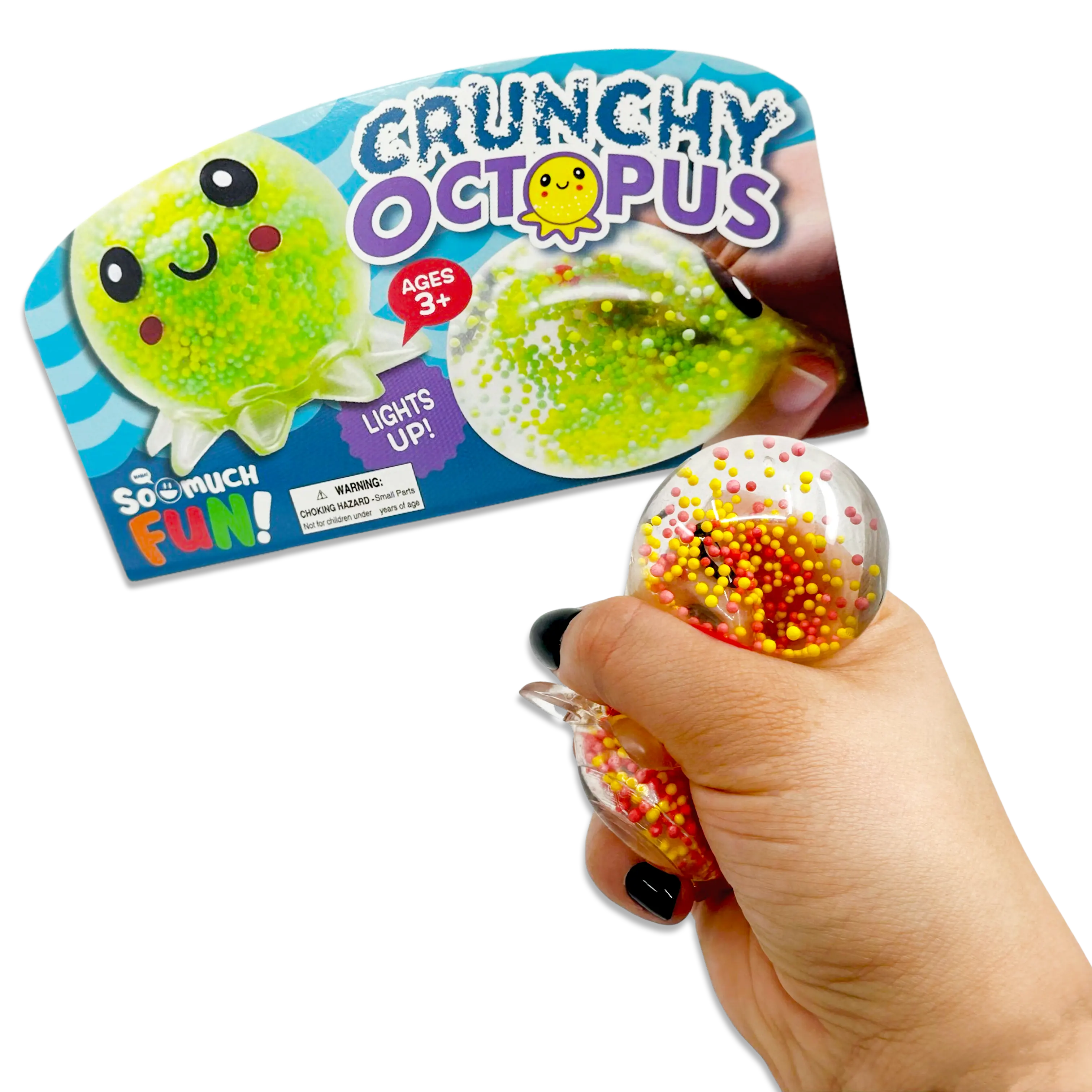 Each octopus is packed with squishiness and loads of fun. Perfect for kid fidgeters and teenagers alike, these light-up toys make the perfect sensory companion. So, cuddle up with a bundle of fun and get your tentacles on that crunchy octopus! Toy bin card included for use on the So Much FUN! Toy Bin Program corrugated display or in the clear toy bin pockets. *NO DISPLAY*