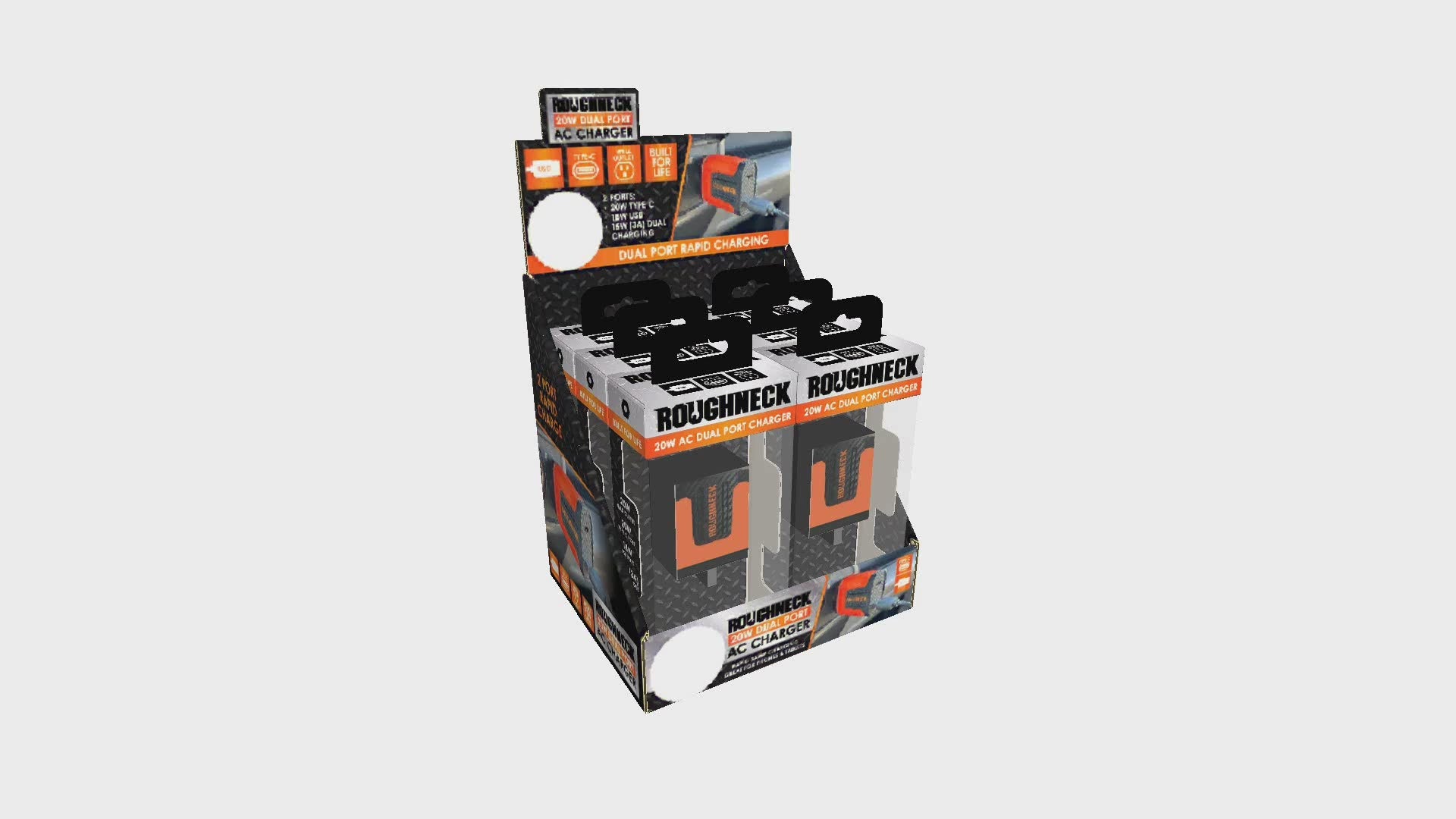 Charges two(2) devices at once – Roughneck AC wall charger features heavy duty construction. USB-C and USB ports; 20W if using USB-C port only; 18W if using USB port only; 15W (3A) total if using both ports simultaneously.