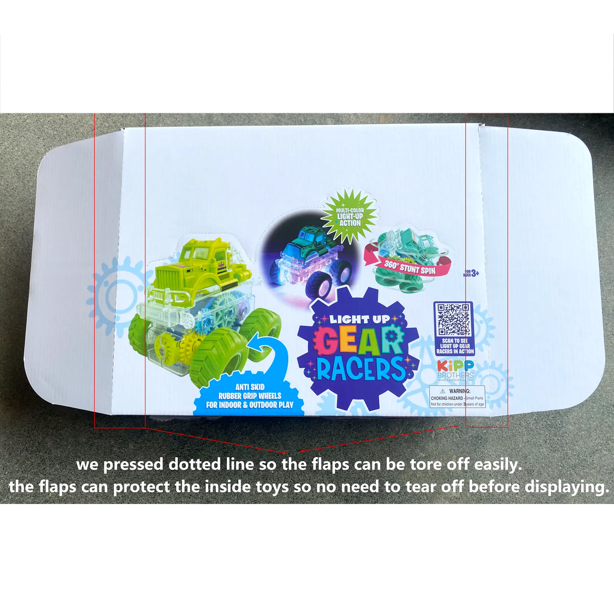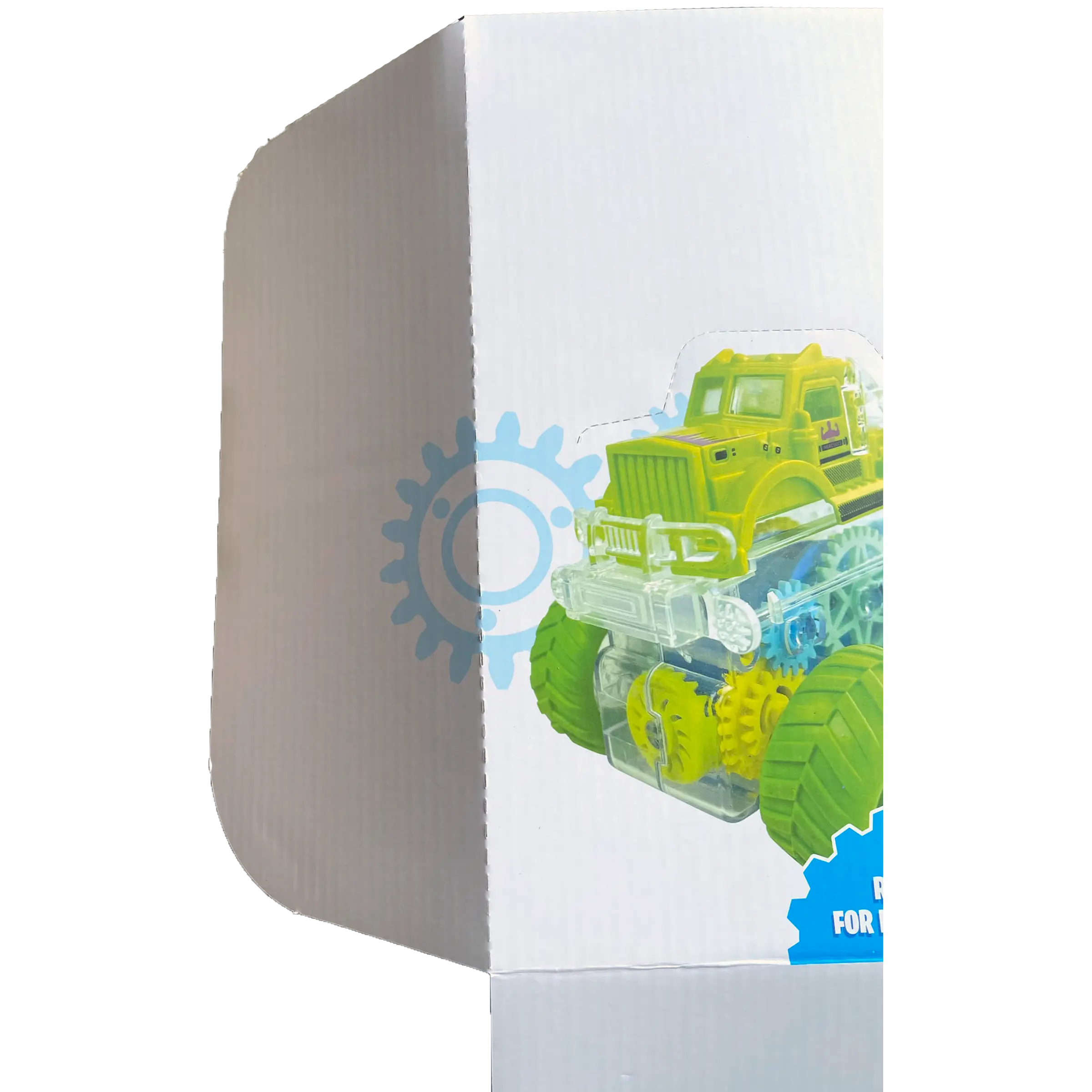 Light Up Vehicle Gear Racers feature multicolor light-up action, push and go friction power and 360º stunt spin! Ages 3+. Assorted colors. Batteries included for light-up action! Anti-skid rubber grip wheels – perfect for indoor AND outdoor play.