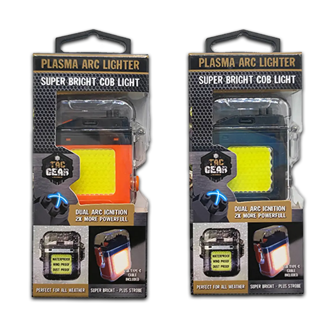 This cutting-edge Tac Gear Plasma Arc Lighter is waterproof and wind-proof (plus features a COB Light,) so you can take on any weather in style. With no smelly butane needed and an included USB Type-C cable, you can charge it up to 40 lights per charge and is great for lighting a fire, grill, camp stove, and more. Be more eco-friendly and take the night by storm!