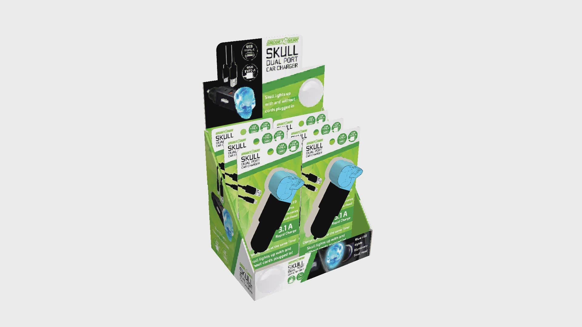 Car Charger Dual Port USB / USB-C LED Skull 3.1 Amp - 6 Pieces Per Retail Ready Display 24001