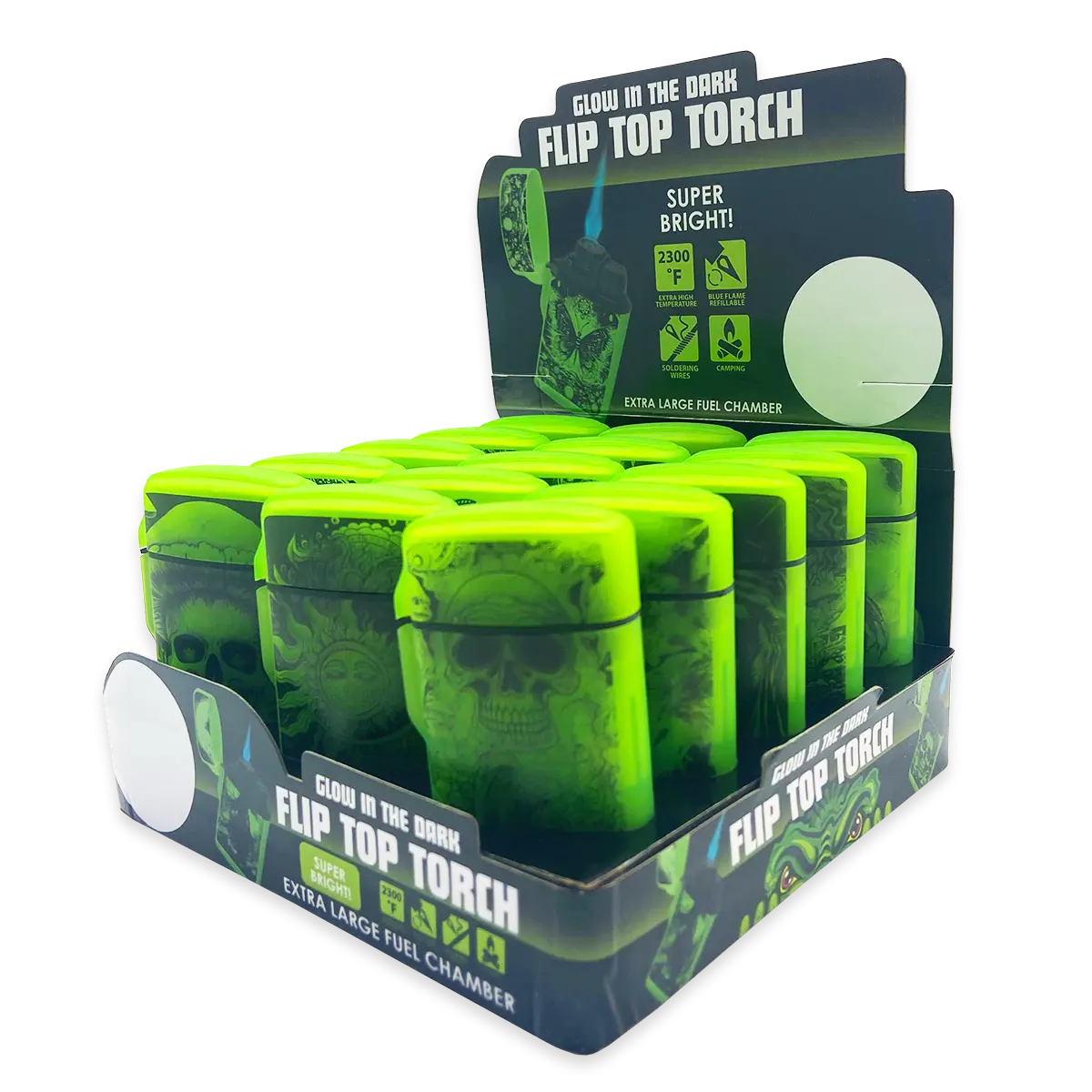 Glow In The Dark Flip Top Torch Lighter - 15 Pieces Per Retail Ready Display 24448