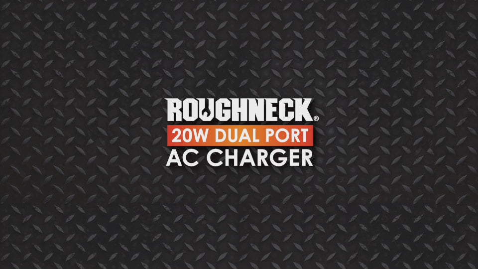 This Roughneck AC charger can charge two of your devices at the same time with the 20W dual port charger. Easily fits in your pocket or bag with folding plugs. Has ports USB-A and USB-C. Perfect for on-the-go use.
