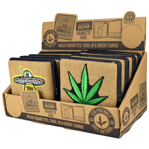 Hemp Metal Cigarette Case with Hinge - 8 Pieces Per Retail Ready Display 30001