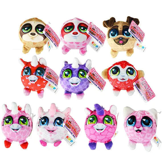 Valentine's Day Floor Display. Display includes 10 mirror glass, 8 Squeez’ems plush, 12 pooping plush, and 12 pillows.