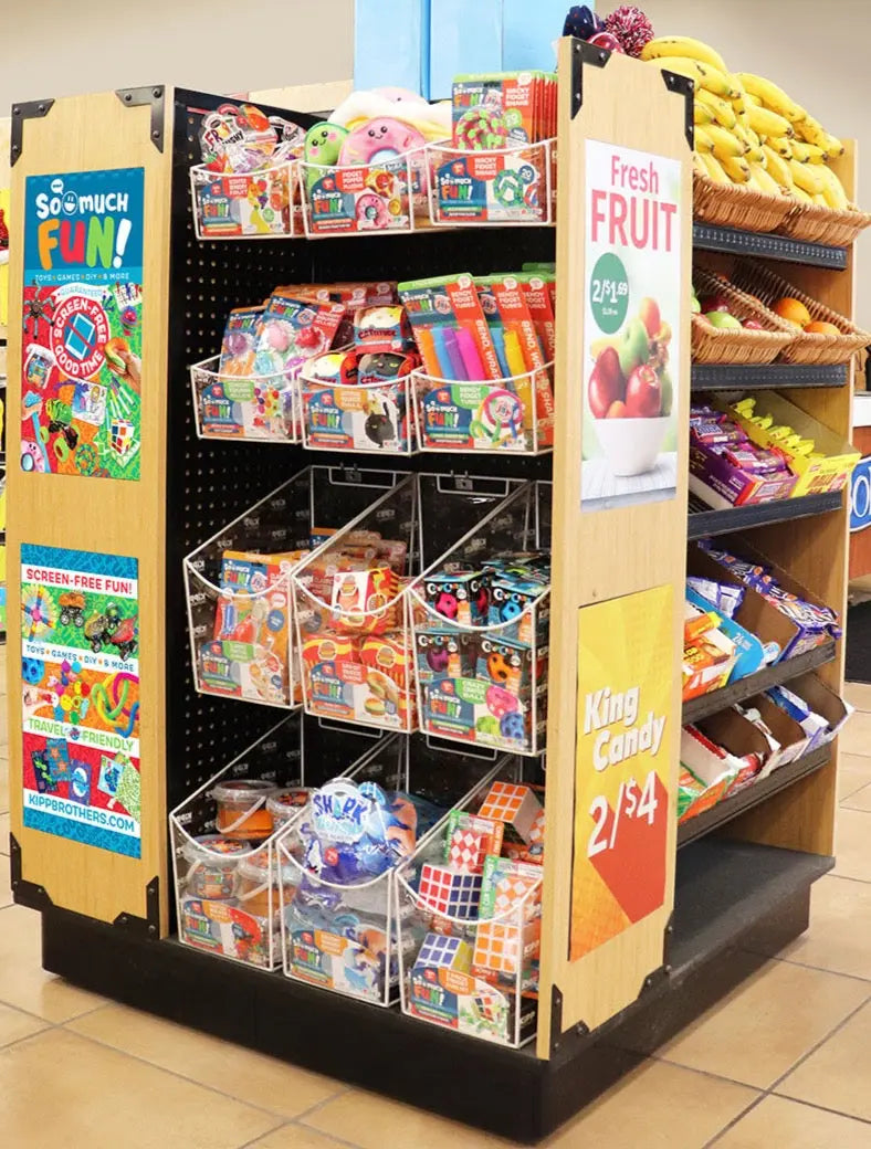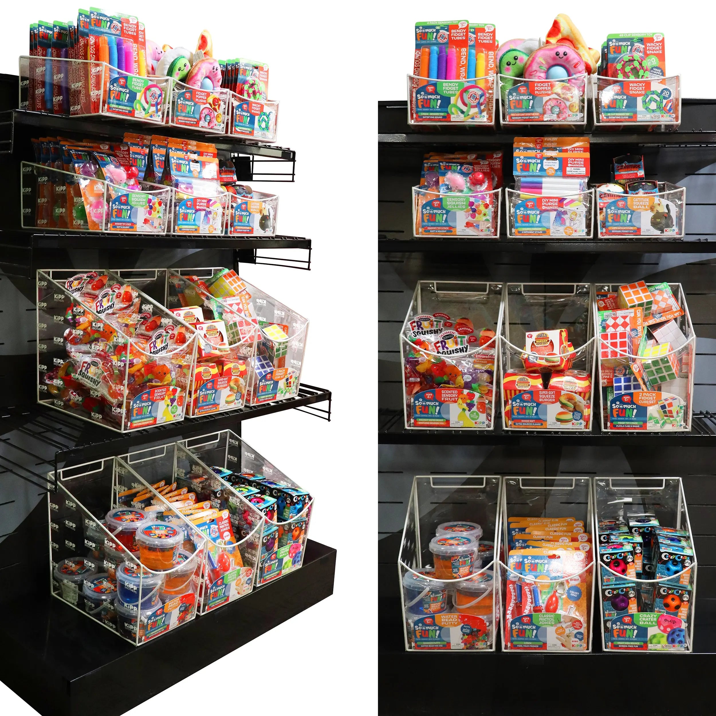 Need a permanent merchandising solution for your store? How about a dozen clear vinyl bins to use with your currently installed pegboards and shelves? Our Toy Bin Kit has you covered!