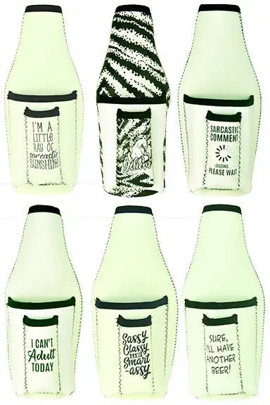 Neoprene Glow in The Dark Bottle Suit Cooler with Cigarette Pouch - 6 Pieces Per Retail Ready Display 24208