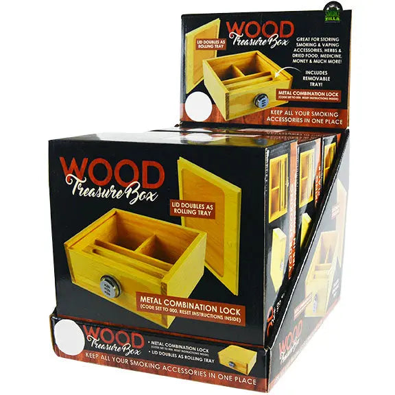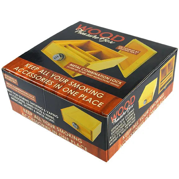 Keep all your smoking accessories in one place. Lid doubles as rolling tray. Includes removable tray, and a combination lock.