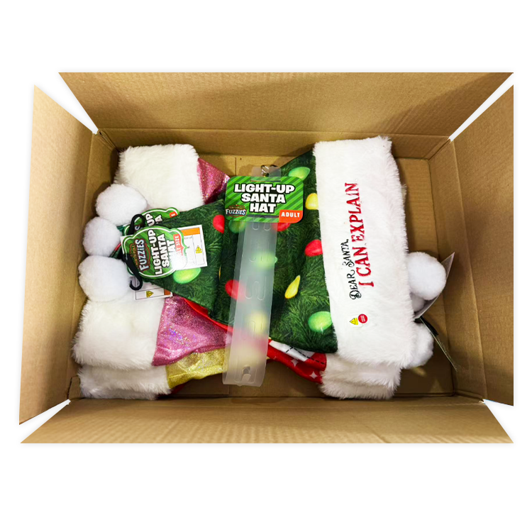 Stay warm and brighten up the holidays with our cozy fleece Santa Hats! These light-up hats come in various styles and playful phrases, each equipped with a merchandising hang strip and hooks for easy display. Perfect for you and your friends to jingle all the way in festive fun, these one-size-fits-most hats make spreading cheer simple and stylish!