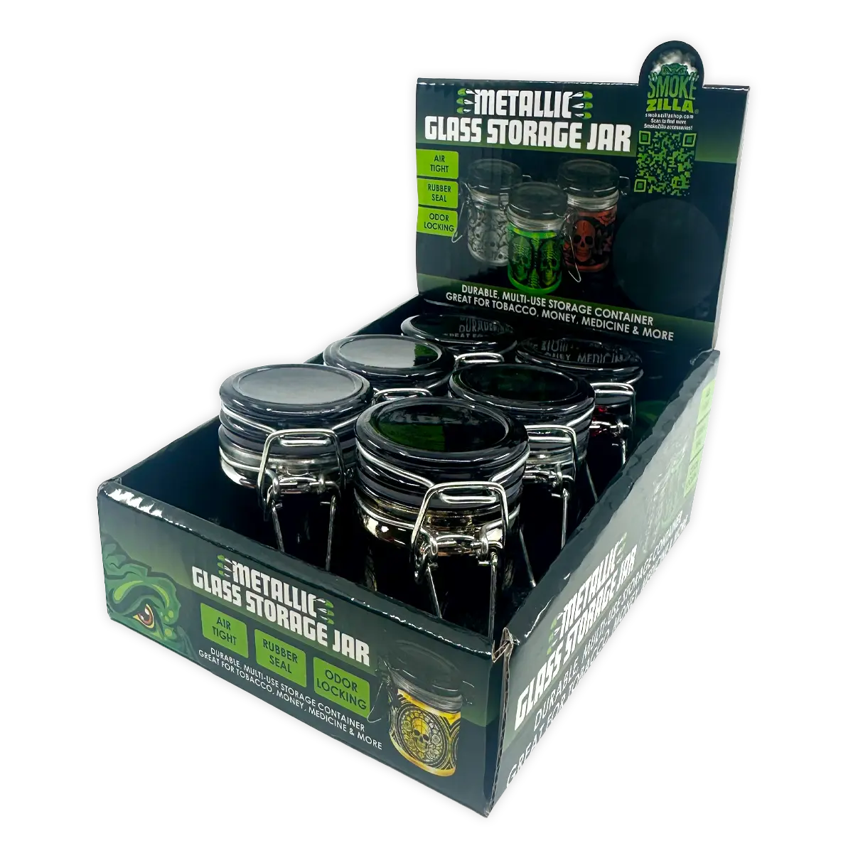 Metallic Smell Proof Glass Storage Jar with Hinged Lid - 6 Pieces Per Retail Ready Display 25891