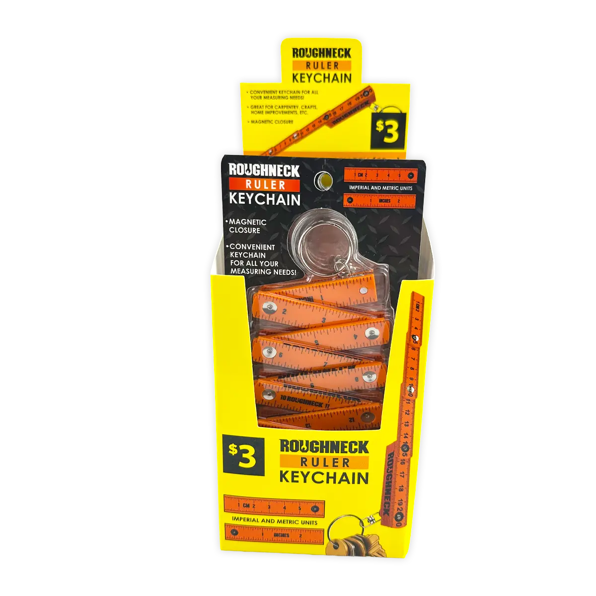 Be prepared for any measuring needs with the Roughneck Ruler Keychain! This compact keychain includes both imperial and metric units for convenience. Perfect for carpentry, crafts, and home improvements, measuring has never been easier. Perfect for all of your projects! Pre-priced at $3.00 per piece.