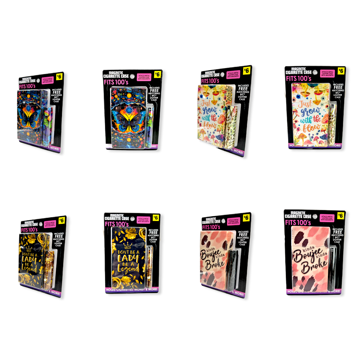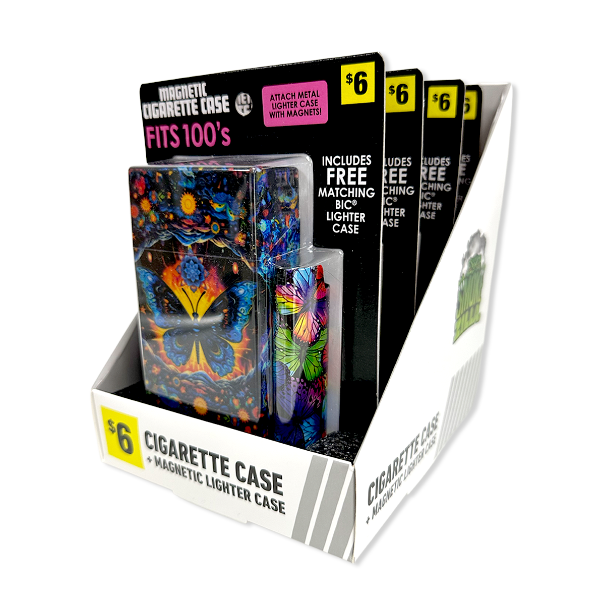 100s Cigarette Storage Case With Magnetic Lighter Case - 4 Pieces Per Retail Ready Display 41828