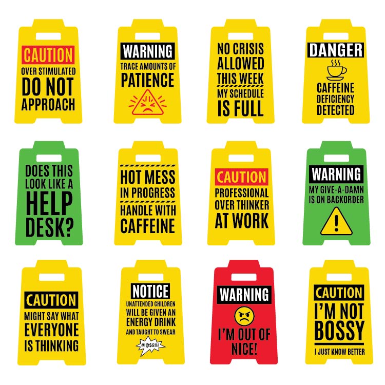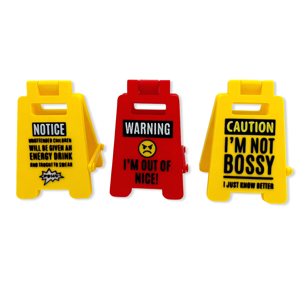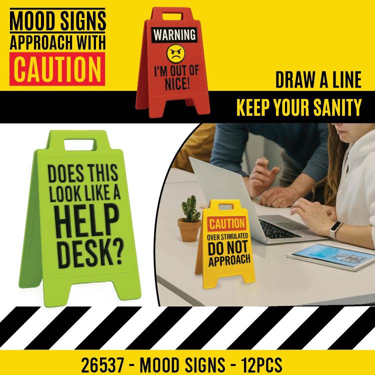 Warning: hilarity ahead! This 2 INCH 3D Standing Mood Caution Sign Assortment delivers cheeky, dimensional signs that humorously flag everything from coffee addiction to Monday blues. Each piece stands independently, making them ideal for desks, shelves, retail displays, and gift baskets. The vibrant designs and witty messaging appeal to office workers, students, and novelty enthusiasts. Comes retail-ready in a display-friendly pack—stock it and watch customers grab them for themselves or as gag gifts. Pure fun in compact form.