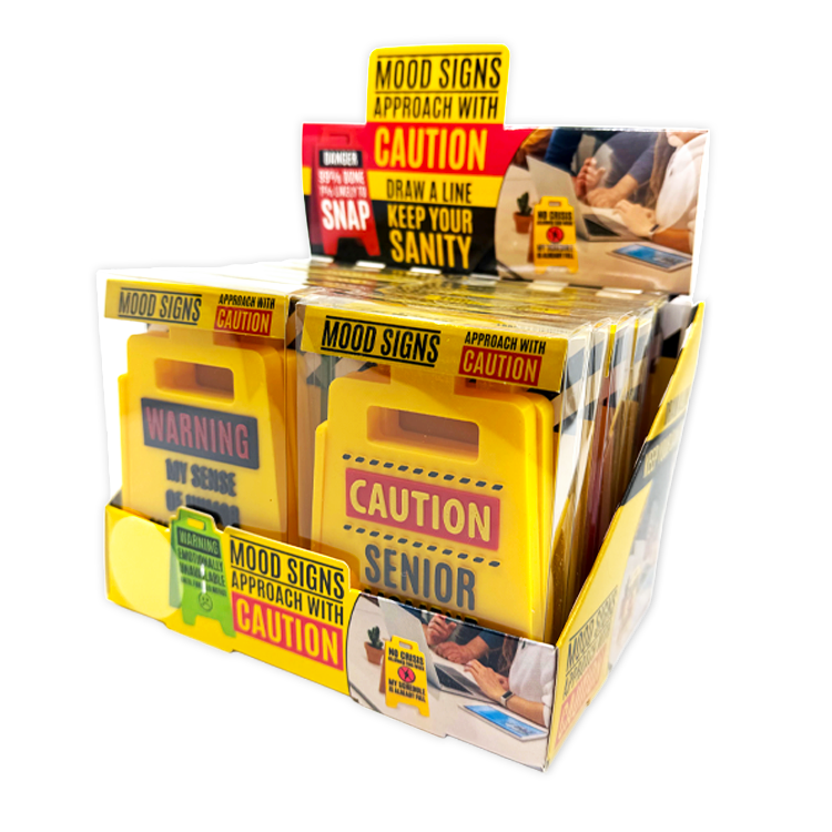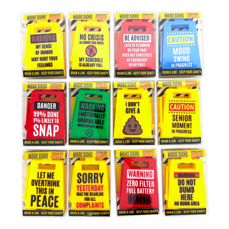 Warning: hilarity ahead! This 4.75 INCH 3D Standing Mood Caution Sign Assortment delivers cheeky, dimensional signs that humorously flag everything from coffee addiction to Monday blues. Each piece stands independently, making them ideal for desks, shelves, retail displays, and gift baskets. The vibrant designs and witty messaging appeal to office workers, students, and novelty enthusiasts. Comes retail-ready in a display-friendly pack—stock it and watch customers grab them for themselves or as gag gifts. Pure fun in compact form.