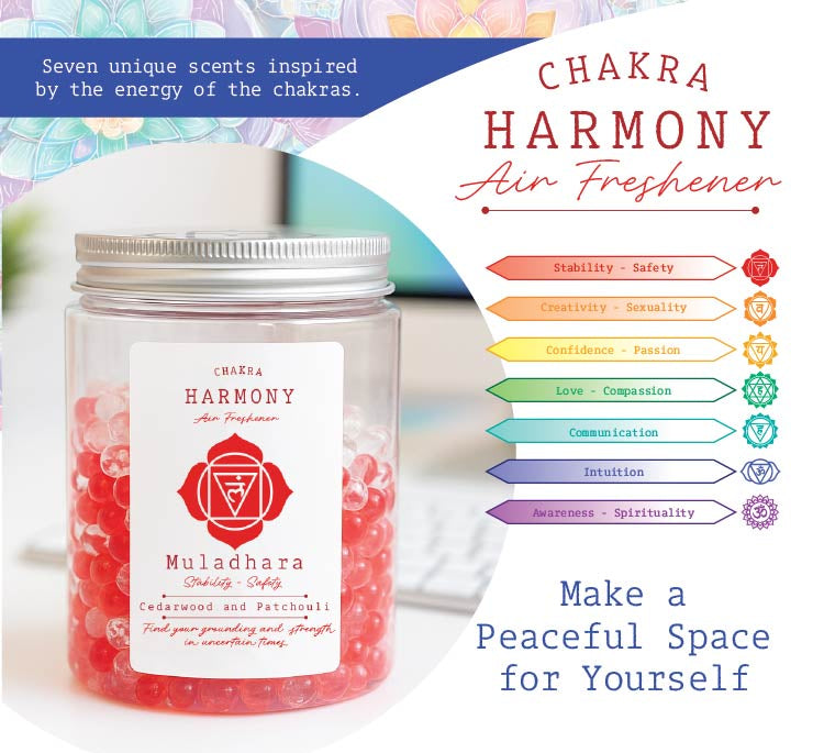 Transform your space into a sanctuary of balance and intention. This Energy Chakra Air Freshener collection brings the ancient wisdom of seven chakras into your daily routine—each vibrant jar represents a different energy center, complete with its own color, symbol, and aromatic signature. More than just fragrance, it's a mindfulness moment in every breath. Let the scent guide you toward emotional harmony while color therapy works its magic on your surroundings. Perfect for retailers to invite customers to align their energy, refresh their space, and find their center—one chakra at a time. Lasts 30 days per jar.