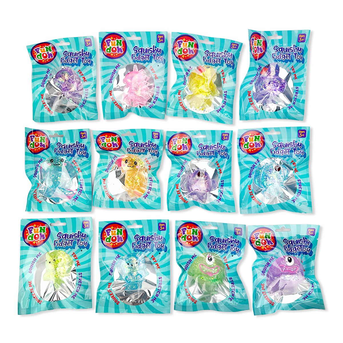 Get ready to squeeze, stretch, and play with these Fun Doh Squishy Gummies! Includes super giant gummy bear-like smooshy-gushy toys, perfect for stress relief and fidgeting. Enjoy hours of fun and relaxation with these quirky and playful gummies! Variety of Bears, Axolotls, Unicorns, Capybaras, Monsters and Ducks.