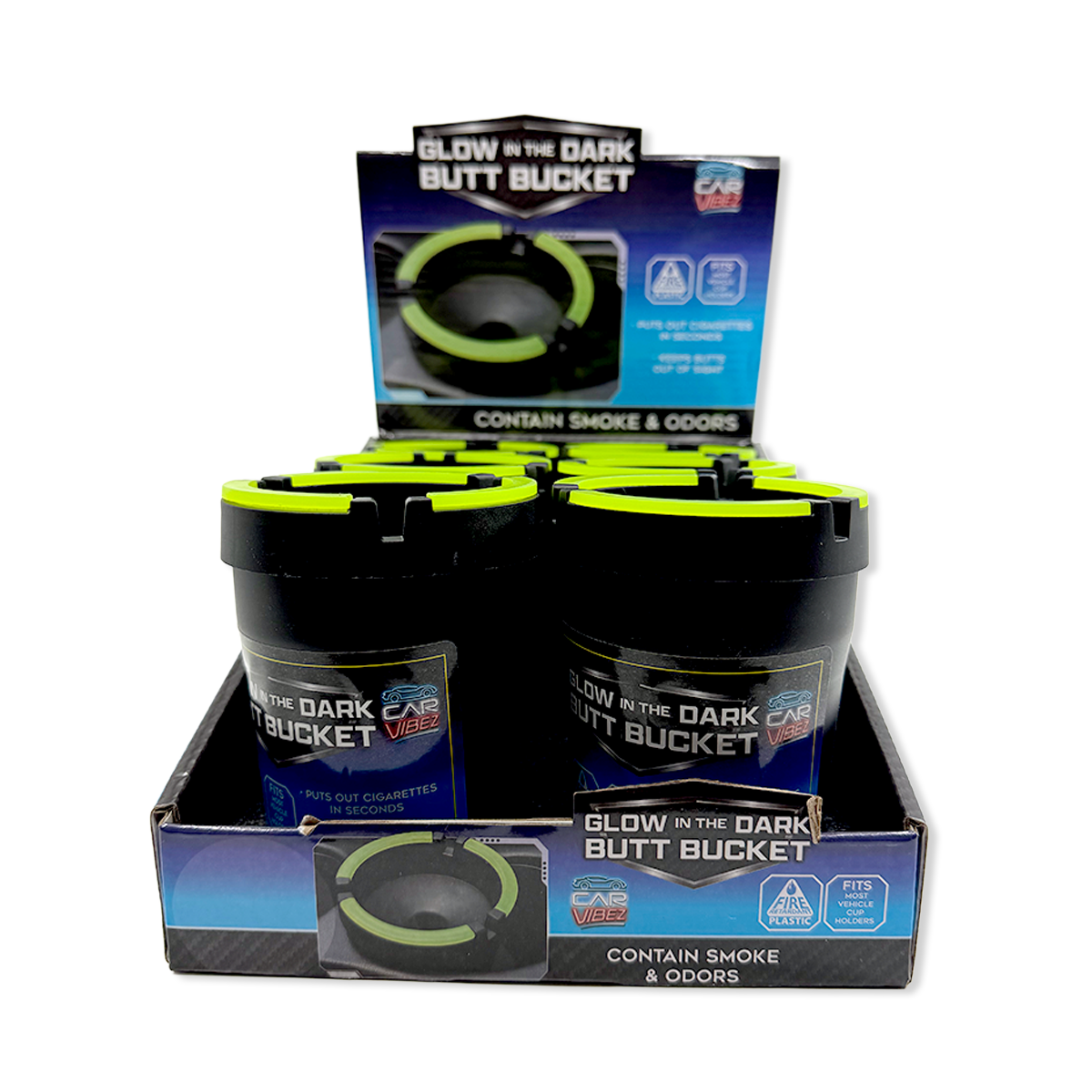 Glow In The Dark Butt Bucket Ashtray – fire-retardant design safely extinguishes cigarettes in seconds while the glow-in-the-dark feature ensures visibility in any lighting condition. This compact ashtray contains smoke and odor effectively, making it ideal for vehicles, patios, or indoor spaces. The universal fit accommodates most standard car cup holders, delivering convenience without taking up valuable space. Perfect for wholesale buyers seeking a practical, eye-catching novelty item with genuine utility.