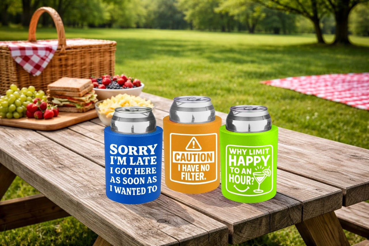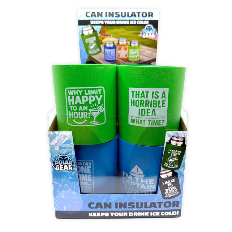 Polar Gear Foam Can Insulators deliver reliable beverage temperature control in a versatile assortment designed for retail display. Features vibrant foam colors—neon orange, blue, black, neon green, green, and light blue. Each insulator showcases a unique saying printed in single-color design for maximum visual impact. Ideal for wholesale distribution, gift retailers, and novelty channels seeking high-margin, quick-turn merchandise with strong consumer appeal.