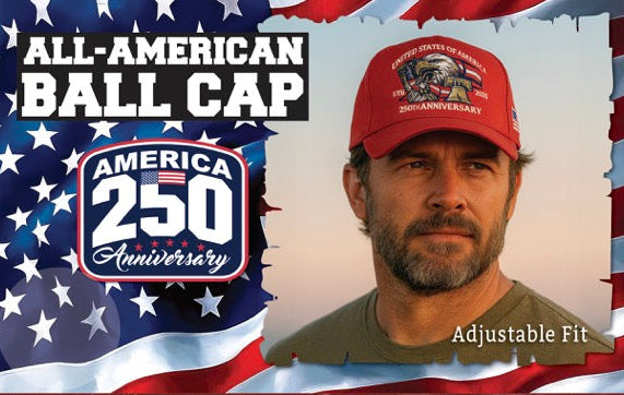 USA 250 All-American Baseball Caps are perfect for outdoor activities like fishing, hunting, baseball games, mowing, driving and more. Made with heavy duty canvas and breathable mesh. Adjustable fit. Each display offers a variety of patriotic designs.
