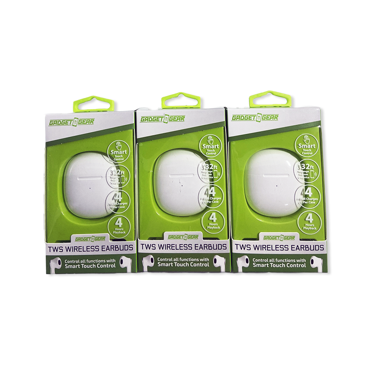 TWS earbuds 4hr playback, 35ft range. Four full charges per case!