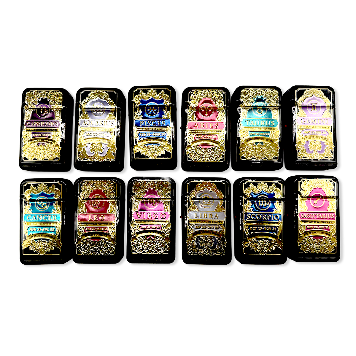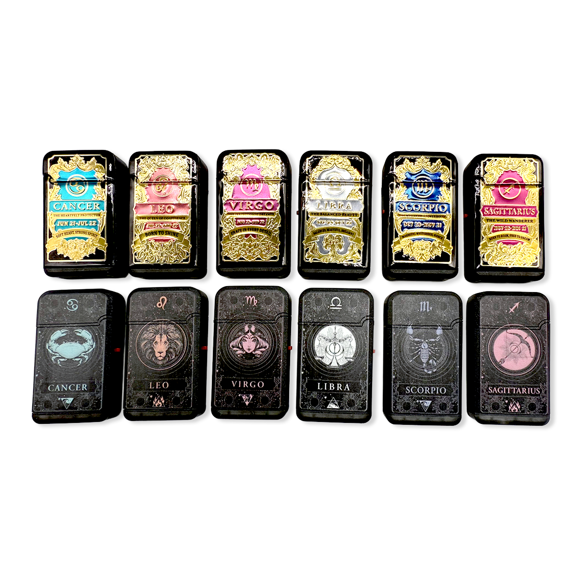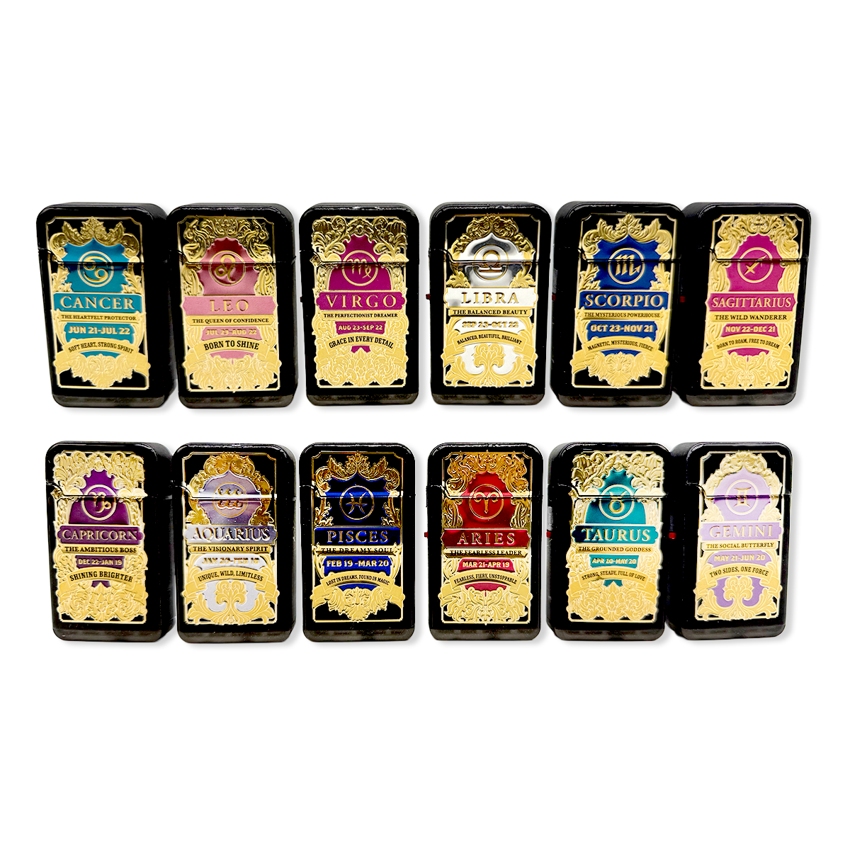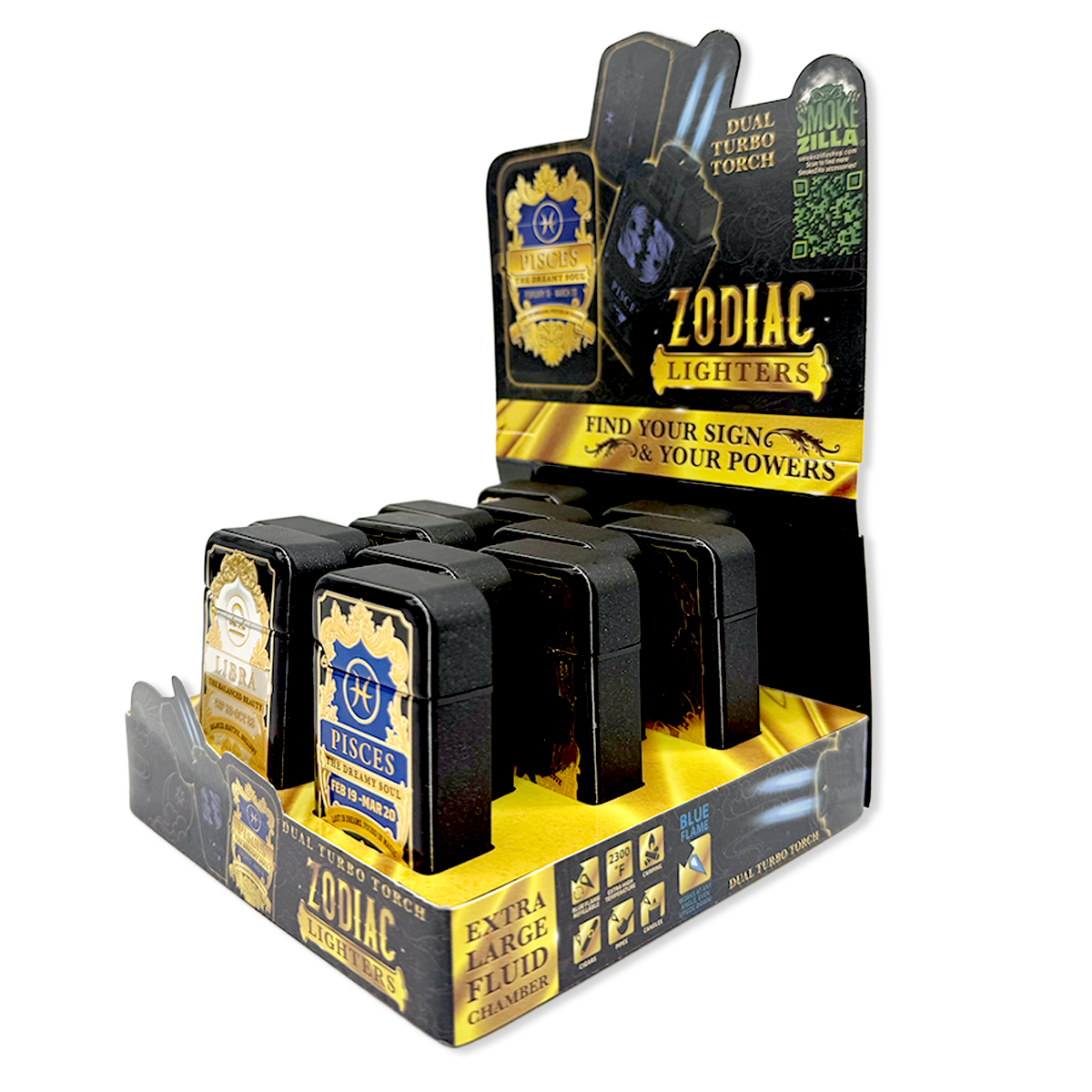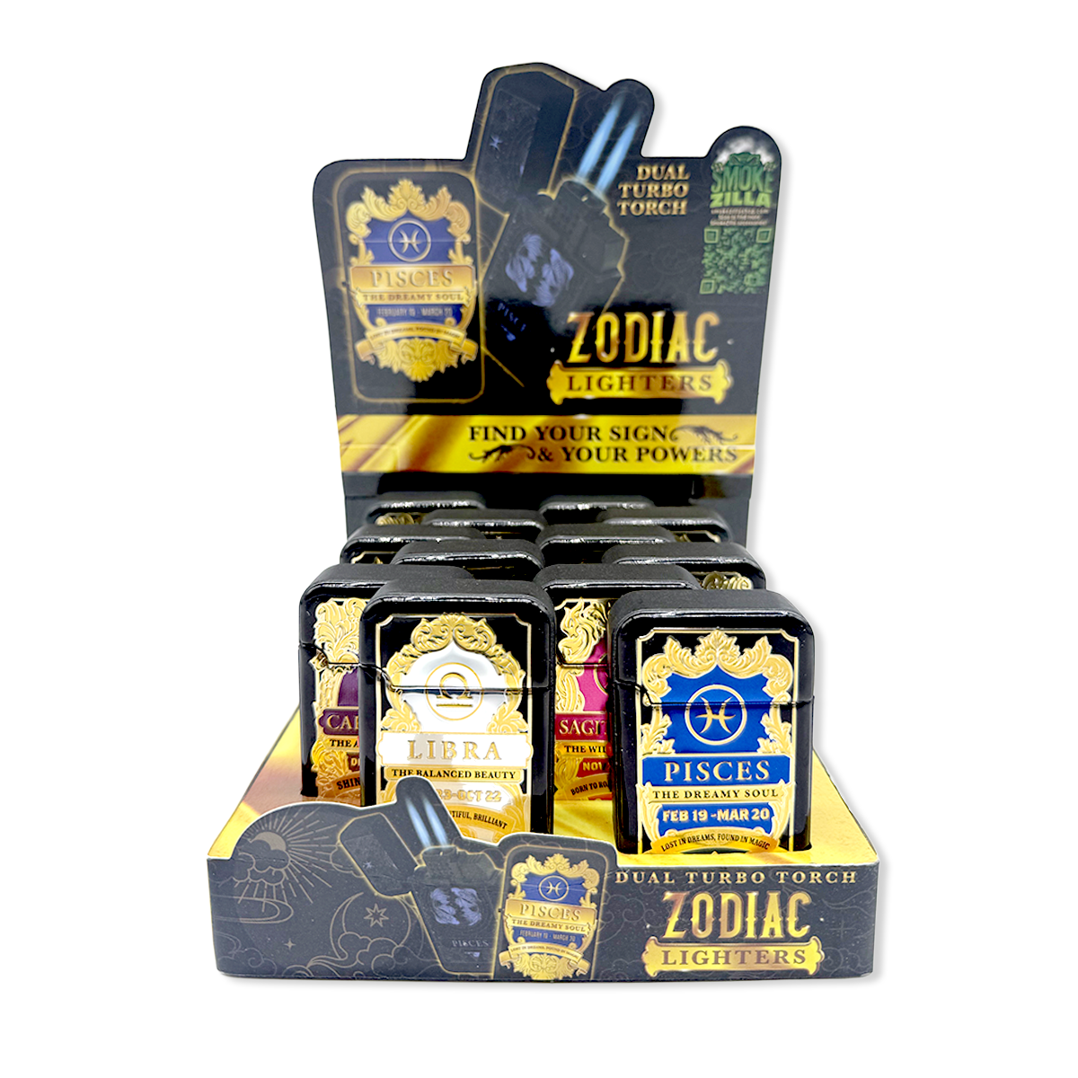 Ignite your spirit with the Zodiac Foil Torch Lighter, featuring a powerful dual turbo torch flame for precise and strong ignition. Each lighter showcases unique zodiac foil designs, allowing you to find your sign and embrace your personal power. These lighters combine style and functionality, making them perfect for collectors or as thoughtful gifts. Light up your world with confidence and cosmic energy.